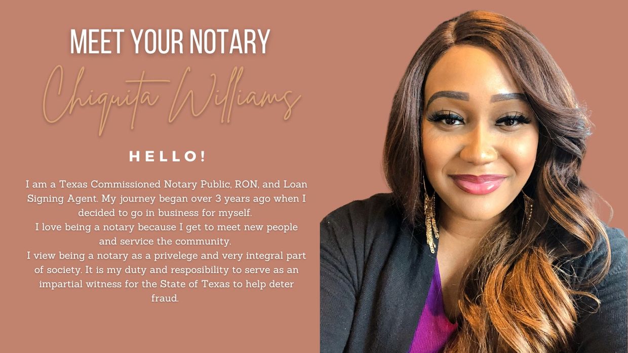 I am pleased to be of service to your notary needs! Click the button below to see my availability and book an appointment.